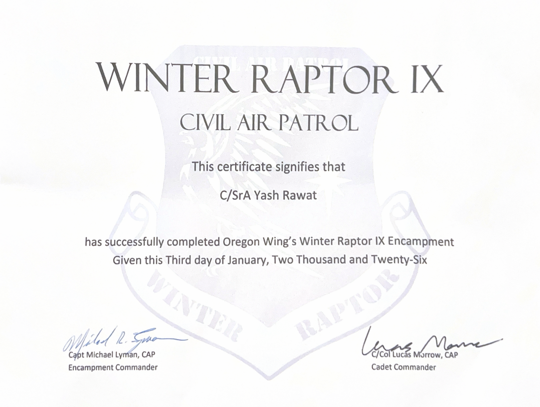 By the end of encampment, I felt proud not because everything was easy, but because it wasn’t. I stayed when I wanted to leave. I finished something that challenged me both mentally and physically. CAP encampment taught me resilience, teamwork, and the importance of relying on others when things get tough.